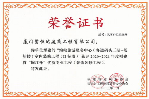 2020~2021年度福建省“闽江杯”优质专业工程-海峡旅游服务中心(客运码头三期-候船楼)室内装修工程(II标段)